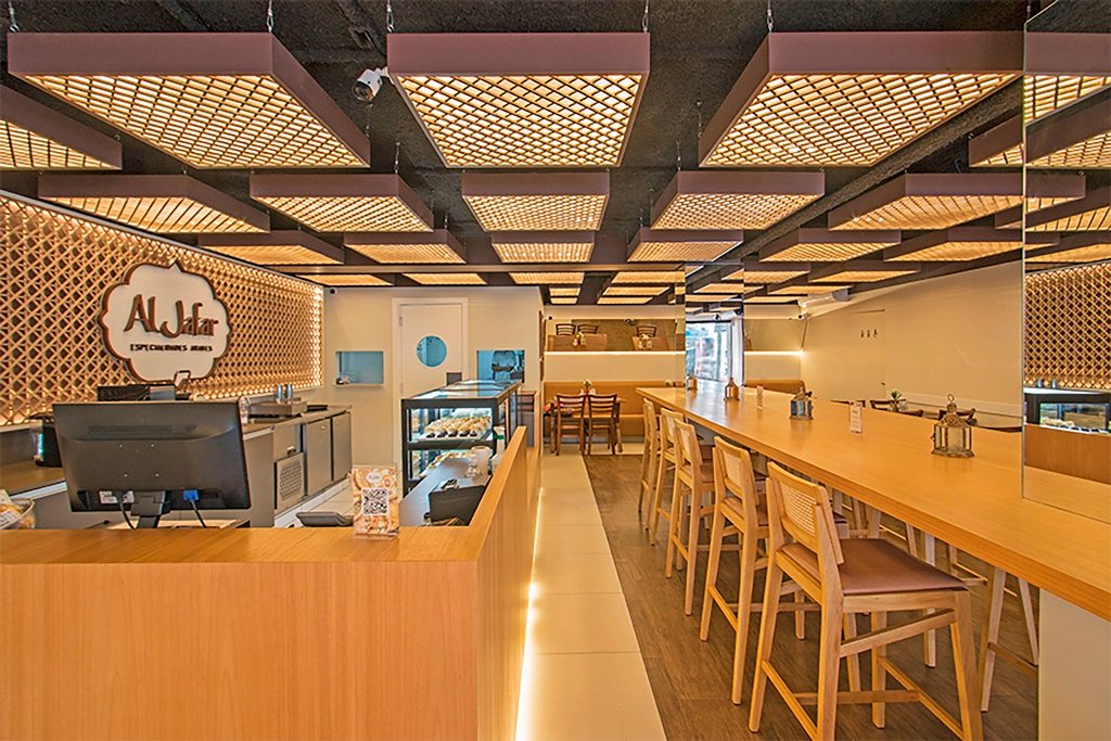 Destacamos também outros projetos marcantes como o emblemático Yorimichi Izakaya, projetado para manifestar a cultura oriental com um toque de brasilidade. A atmosfera acolhedora e o equilíbrio entre o minimalismo japonês e a descontração brasileira renderam ao restaurante um lugar constante entre os três melhores izakayas do país, além do Al Jafar, que nasceu com o desafio de ajustar as operações de delivery, take away e consumo local, além de modernizar o ambiente e criar uma identidade visual exclusiva com potencial de expansão para futuras unidades, e também os recém inaugurados Kinkan Flagship super aconchegante e com um conceito voltado para o take away e o sofisticado e acolhedor.