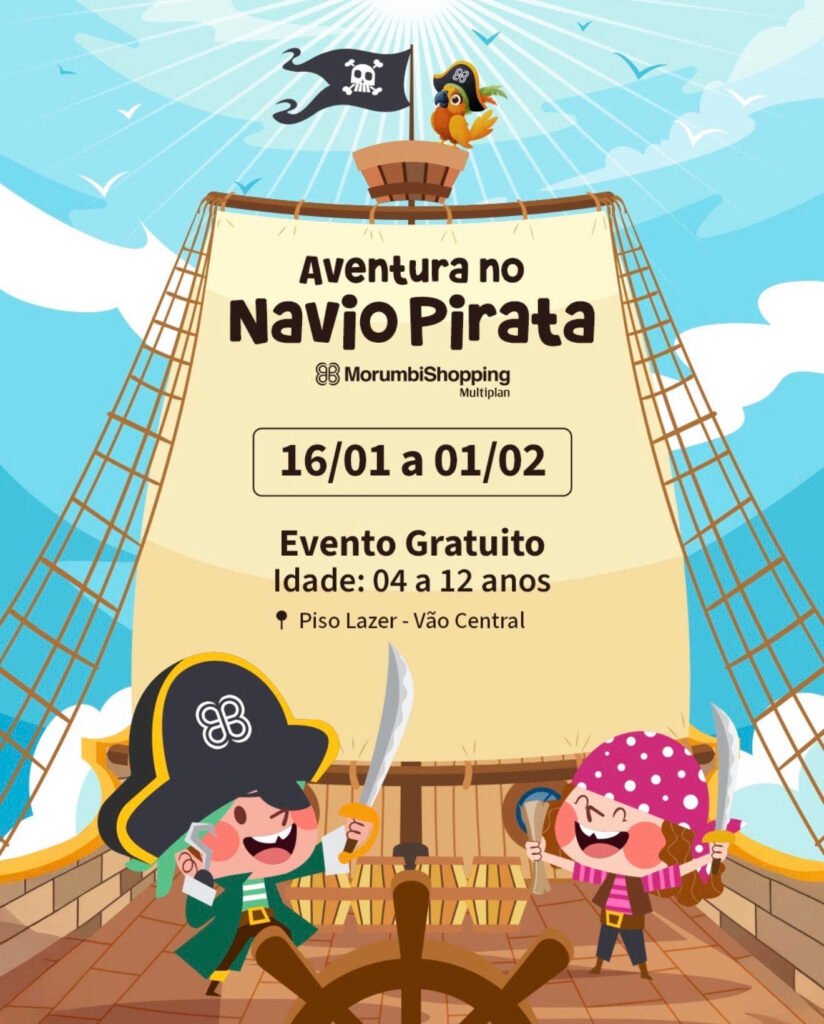 Durante as férias de verão, um navio pirata ganha vida no MorumbiShopping com o evento “Aventura no Navio Pirata”, que acontece de 16 de janeiro a 1º de fevereiro, no Piso Lazer – Vão Central.