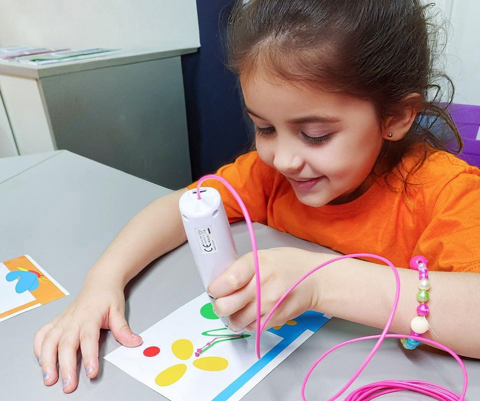 Já na oficina de caneta 3D, as crianças soltam a criatividade para personalizar uma base impressa em 3D ou criar peças simples do zero, como flores, borboletas, chaveiros e outras pequenas figuras. Tudo com materiais seguros e exclusivos da MyRobot.