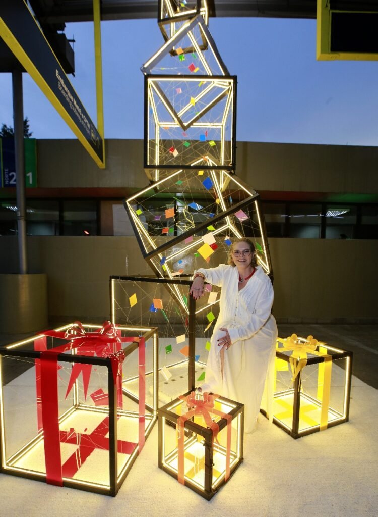 A artista plástica Cintia Abravanel leva sua obra “Presentes” ao público neste fim de ano. A instalação, que traz uma releitura contemporânea da árvore de Natal, pode ser vista de 2 de dezembro a 6 de janeiro no Outlet Premium Imigrantes, localizado na Rodovia dos Imigrantes, em São Bernardo do Campo.