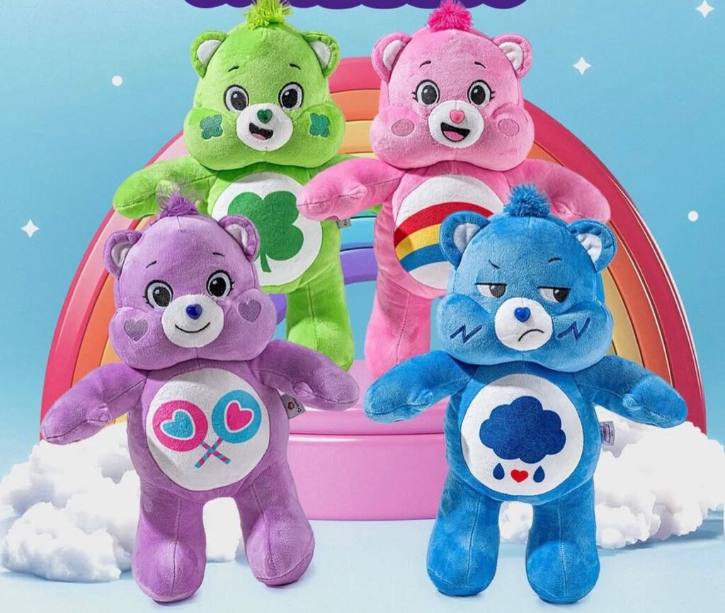 A coleção apresenta quatro personagens icônicos: Good Luck Bear (Boa Sorte), o generoso e otimista ursinho verde que acredita que, com esforço — e um pouco de sorte — tudo é possível; Share Bear (Carinhosa), a ursinha roxa adorável que ama compartilhar, simbolizada por dois pirulitos em forma de coração que nos lembram que a bondade se multiplica quando é compartilhada; Cheer Bear (Animadinha) a vibrante ursinha rosa que espalha alegria por onde passa, com um arco-íris em sua barriguinha como expressão perfeita de sua energia positiva; e Grumpy Bear (Zangadinho), o ursinho azul de cara fechada que é impossível não amar, trazendo uma nuvem de chuva com gotas em forma de coração que mostram que até o mau humor pode ser recebido com carinho.