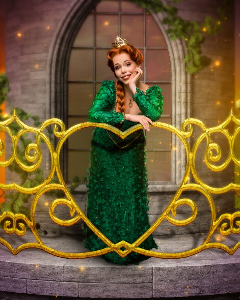 O figurino de Fiona tem assinatura de Ligia Rocha e foi inspirado nos desenhos originais do britânico Tim Hatley, criados para as montagens internacionais de Shrek – O Musical. A figurinista conta que cada detalhe foi pensado, das texturas dos tecidos aos tons de verde, para sustentar a transformação da personagem em cena e acompanhar as exigências de movimento ao longo do espetáculo.