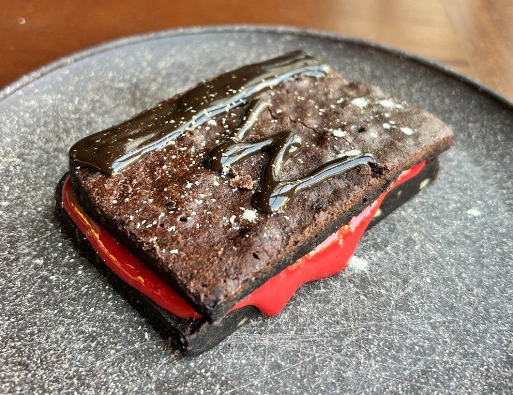 Grimório Encantado: Para finalizar a experiência, a sobremesa é pura tentação: um brownie denso e macio, coberto com doce de leite rosa e calda de chocolate. Um feitiço doce digno de ser registrado em qualquer livro de magia.